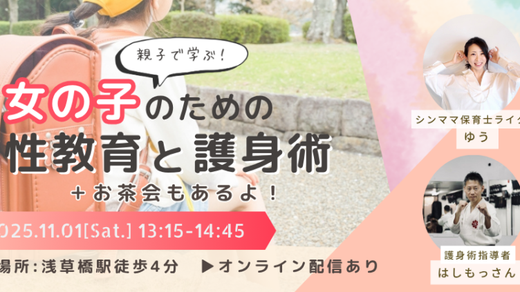News 5歳から学べる!親子で学ぶ性教育セミナー開催 ▼セミナーの詳細はこちら「自分の体は自分のもの」このシンプルな言葉を、子どもが本当に理解できるようになるには長い年月が掛かり、体感としては10代後半から徐々に理解し始めると思います。しかし、性被害は幼少期から始まります。ニュースでも時々保育... 2025.10.06 Newsおすすめの育児のコツ